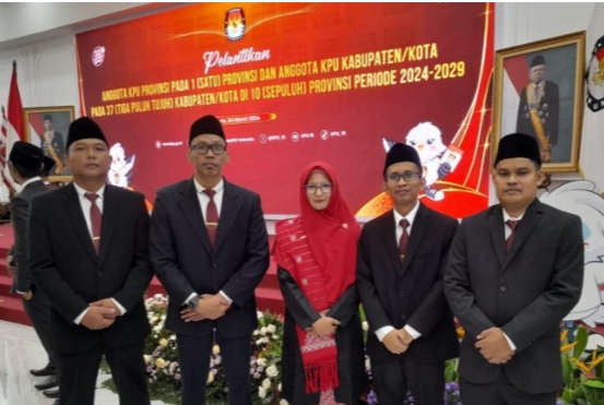 Komisioner Komisi Pemilihan Umum (KPU) Kabupaten Bengkalis periode 2024-2029 resmi dilantik Ketua KPU Republik Indonesia Hasyim Asy’ari, di Gedung KPU RI, Jakarta. Hari Minggu (24/3/2024).