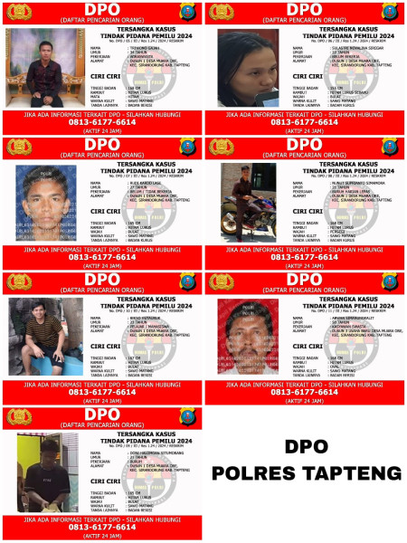 “Telah dilakukan pemanggilan dan pencarian langsung oleh Pihak Polres Tapanuli Tengah (Gakumdu Pemilu 2024 Kab. Tapteng) namun keberadaan ke 7 (Tujuh) tersangka tersebut tidak diketahui hingga DPO ini diterbitkan” Tutup Kasat Reskrim Polres Tapanuli Tengah.(jum.s)