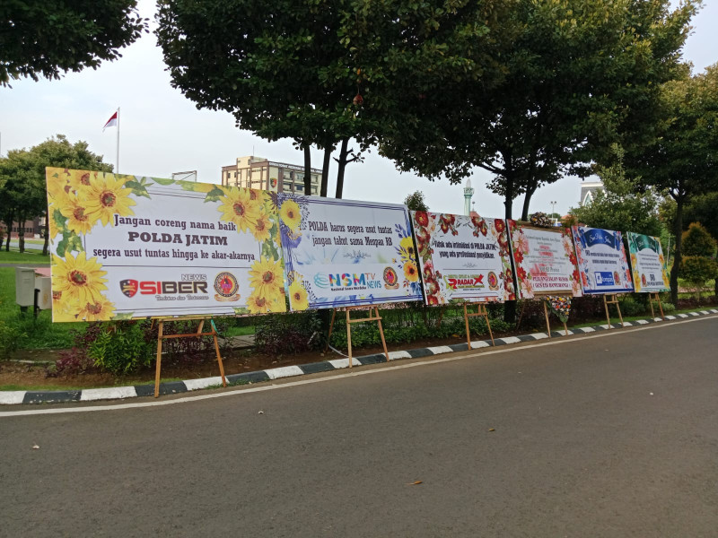 BANYUWANGI , indonesiaclik.com ll , Beberapa Karangan Bunga Dari berbagai Media dan aktivis Banyuwangi Berderet Di Polda Jatim Surabaya