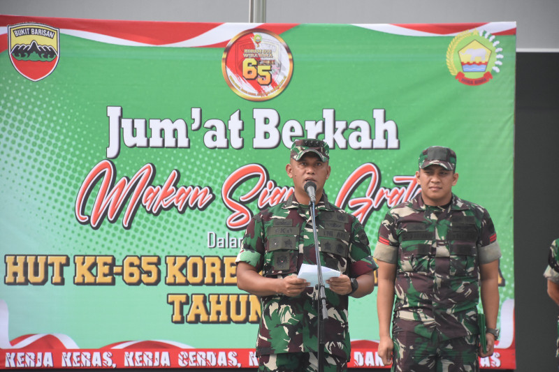 Pekanbaru ,indonesiaclik.com ll , Dalam rangka Memperingati Hut ke-65 Korem 031/WB yang jatuh pada tanggal 17 April 2024, berkenaan dengan Jum’at Berkah kali ini Korem 031/Wira Bima bagikan makan siang gratis kepada siswa dan siswi sekolah dasar yang berada di sekitar Makorem 031/WB yang secara resmi di lepas oleh Danrem 031/WB Brigjen TNI Dany Rakca, S.A.P., M.Han yang di wakili oleh Kasrem 031/WB Kolonel Kav Eko Agus Nugroho, S.I.P., M.Si. di Lapangan Upacara Makorem 031/WB, Jl. Mayor Ali Rasyid No. 1 Pekanbaru, Jumat 26 April 2024.