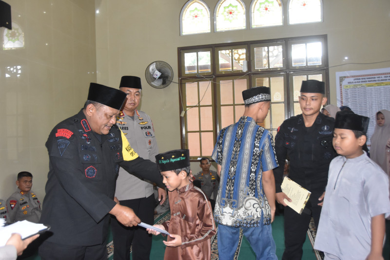 Pekanbaru,indonesiaclik.com ll, Komandan Satuan Brimob Polda Riau Kombes Pol Dwi Yanto Nugroho, S.I.K., M.Han pimpin langsung acara pemberian santunan anak yatim piatu yang dilaksanakan di Masjid An Nur Brimob Polda Riau.