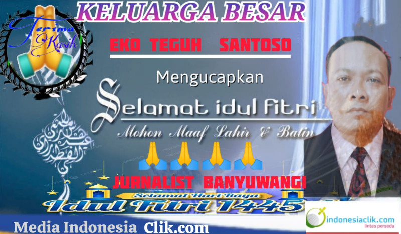 Banyuwangi, Indonesiaclik.com ll , Gema takbir telah di kumandangkan sambut hari yang Fitri ini, Rabo 9 April 2024, redaksi media online, Sengaja maupun yang tidak sengaja, dari tutur kata dan khilaf, dengan segala kerendahan dan keikhlasan, maka izinkan kami keluarga besar media online Indonesia cilik.com Banyuwangi menyampaikan