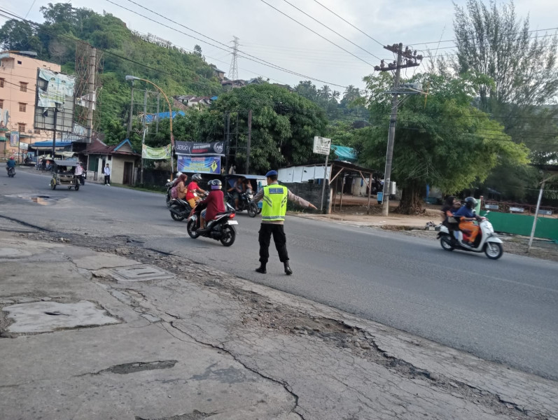 SIBOLGA , indonesiaclik.com ll ,Personil Polres Sibolga turun ke jalan urai kemacetan dan mengantisipasi Laka Lantas dan segala bentuk Pelanggaran Lalu Lintas, Personil Polres Sibolga turun ke jalan melaksanakan Patroli dan Pos Padat Pagi serta melakukan Pengaturan Arus Lalu Lintas dalam Kegiatan Rutin Yang Ditingkatkan (KRYD), Sabtu (27/04/2024) pukul 06.30 Wib s/d 07.30 Wib.