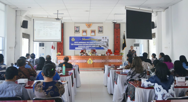 Samosir, indonesiaclik com ll , Pemerintah Kabupaten Samosir menggelar Rapat Koordinasi yang melibatkan Tim Teknis Pelayanan dan Tim Pengawasan Perizinan Berusaha Berbasis Risiko. Rakor dibuka oleh Bupati Samosir diwakili Plh. Sekretaris Daerah Marudut Tua Sitinjak didampingi Asisten II Hotraja Sitanggang, dan Kadis PMPTSP Pilippi Simarmata di Aula Kantor Bupati Samosir, Kamis (18/4).