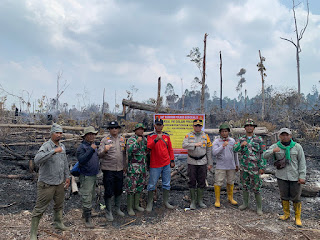 Kapolsek Pinggir Kompol.Darmawan, S.H., MH harus turun langsung melakukan penanggulangannya ke Lokasi Tempat Kejadian Perkara (TKP) Kebakaran Hutan dan Lahan (Karhutlah).