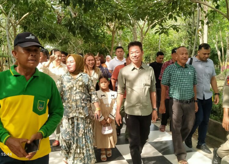 Rokan Hilir, indonesiaclik.com ll ,Hari ketiga Idul Fitri, Bupati Rokan Hilir ( Rohil ) Afrizal Sintong di dampingi Ketua TP PKK Rohil Ny.Sanimar Afrizal beserta keluarga berkunjung ke tempat wisata Hutan Kota untuk menikmati udara segar alami sambil melihat suasana lebaran di lokasi tujuan wisata Rohil tersebut, Jumat (12/4/2024) sore di Jalan Kecamatan Bagan Punak Meranti Kecamatan Bangko, Rohil, Provinsi Riau.