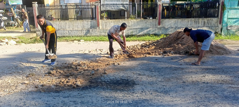 Jalan di depan kantor Kelurahan Aek Parombunan telah lama menjadi perhatian karena kondisinya yang memprihatinkan. Lubang-lubang di jalan tersebut tidak hanya mengganggu kenyamanan pengguna jalan, tetapi juga meningkatkan risiko kecelakaan. Dalam upaya untuk mengatasi masalah ini, Aipda Makmur Sinaga dan timnya mengambil inisiatif untuk melakukan perbaikan secara langsung.