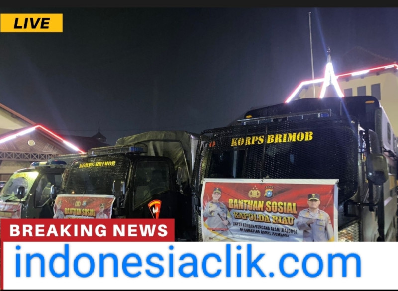 Pekanbaru,indonesiaclik.com || 3 unit truk Satuan Brimob Polda Riau mengangkut logistik bantuan dari Polda ke Sumatera Barat untuk membantu korban terdampak bencana tanah longsor dan banjir bandang.