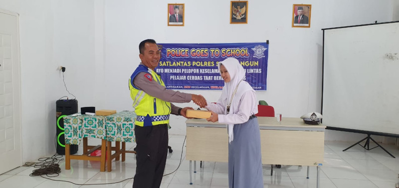 Memberikan materi kepada siswa/i tentang tertib dalam berlalu lintas dan mengajarkan arti rambu-rambu lalulintas serta himbauan larangan berkendara untuk anak dibawah umur dan hal hal yang di anggap sangat perlu guna terjaminnya keamanan di jalan raya.