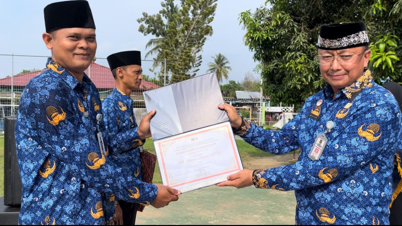 DISELA UPACARA HARKITNAS KE-116, BAHTIAR BERI PENGHARGAAN KEPADA 2 ORANG PETUGAS