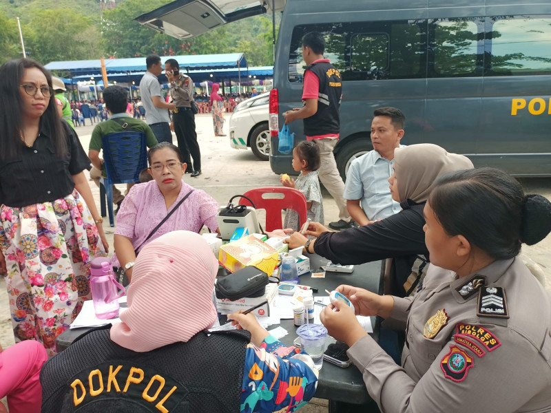 SIBOLGA , indonesiaclik.com ll , Peduli Kesehatan Kapolres Sibolga AKBP Achmad Fauzy, SH, SIK, MIK, Gelar Pemeriksaan Kesehatan untuk Warga Masyarakat yang menghadiri Perayaan Oukumene Paskah dilapangan Simaremare Kota Sibolga. Pelaksanaan Pemeriksaan Kesehatan tersebut di Prakasai oleh Kapolres Sibolga dengan memboyong Tim Kesehatan Polres Sibolga yaitu Sidokkes Polres Sibolga (Dokter Kesehatan) Polres Sibolga dan Dinas Kesehatan Kota Sibolga dengan menggelar Pemeriksaan Kesehatan bagi Warga Masyarakat Sibolga, di Lapangan Simaremare Sibolga, Minggu (05/05/2024), pukul 15.00 wib s/d Selesai.
