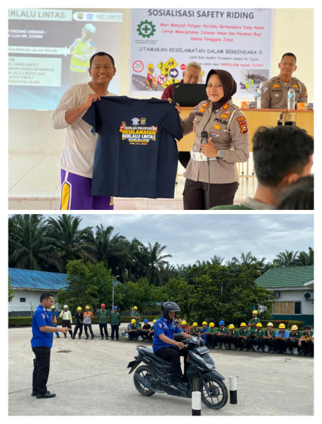 Pelalawan (Riau), indonesiaclik.comll, Satlantas Polres Pelalawan menggelar kegiatan yang berfokus pada sosialisasi dan edukasi tentang safety riding serta penyuluhan terkait tata tertib berlalu lintas guna mewujudkan keamanan, keselamatan, ketertiban dan kelancaran lalu lintas (Kamseltibcar Lantas) kepada Karyawan PT. ADEI Plantation and Industry, Sabtu (4/5/2024).