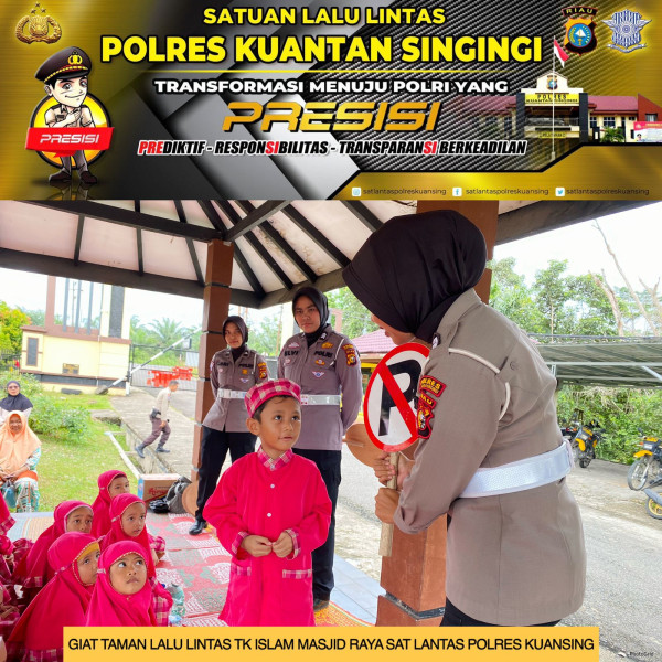 Kapolres Kuansing, AKBP Pangucap Priyo Soegito, S.I.K, M.H., melalui Kasat Lantas AKP Boy Setiawan S.AP., M.SI, mengatakan, “Giat ini melibatkan personil dari Polres Kuansing, antara lain Brigadir Elvi, Brigadir Suci, Bripda Asri, Bripda Zihan, dan Bripda Yesi. Mereka bertugas menyampaikan pemahaman kepada anak-anak tentang dasar-dasar UU Lalu Lintas Jalan, mulai dari pengenalan rambu lalu lintas hingga fungsi zebra cross di taman lalu lintas,” jelas Kasat.