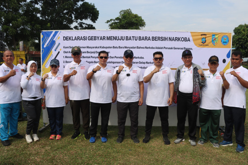 Batu Bara, indonesiaclik.com ll ,Ribuan masyarakat bersama Forkopimda Batu Bara kompak mendeklarasikan perang dengan Narkoba pada acara Gebyar Batu Bara Bersih Narkoba. Kegiatan itu digelar di Lapangan Bola Kaki Blok 8, Kelurahan Lima Puluh, Kecamatan Lima Puluh, Kabupaten Batu Bara, pada Kamis (6/6/2024), sekitar pukul 07.00 wib.
