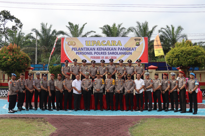 Semarak hari Bhayangkara 1 Juli Hari Bhayangkara kian terasa lengkap dengan diberikannya penghargaan kenaikan pangkat setingkat lebih tinggi kepada Personil Polri. 21 Personil Polres Sarolangun terima kenaikan Pangkat dalam Upacara Korp Raport yang dipimpin langsung oleh Kapolres Sarolangun AKBP Budi Prasetya, S.IK, M.Si.
