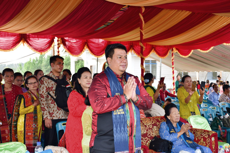 Samosir, indonesiaclik.com ll , Bupati Samosir Vandiko T. Gultom disambut antusias seluruh jemaat dan pengurus gereja dalam acara Pesta Pembangunan HKBP Janji Marapot Resort Lumban Suhi-Suhi Desa Parhorasan, 30/06.