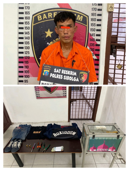 Pada hari Selasa siang, 04 Juni 2024, sekitar pukul 12.30 WIB, Tim Opsnal Sat Reskrim Polres Sibolga, Bhabinkamtibmas Kelurahan Pasar Belakang, KA Pol Sub Sektor Kota, dan DPD BKPRMI Kota Sibolga berhasil mengamankan seorang terduga Pelaku, BHA alias K (40) Tahun, warga Jl. Jarum-Jarum, Kelurahan Bunga Tanjung, Kecamatan Datuk Bandar Timur, Kota Tanjung Balai. Pelaku beserta Barang Bukti berupa satu kotak infak, dua buah gembok, pakaian yang dikenakan saat aksi, serta peralatan yang digunakan untuk membongkar Kotak Infak, dan uang tunai sebesar Rp. 340.000,- diamankan ke Mako Polres Sibolga untuk diproses lebih lanjut, Ujar Kasat.