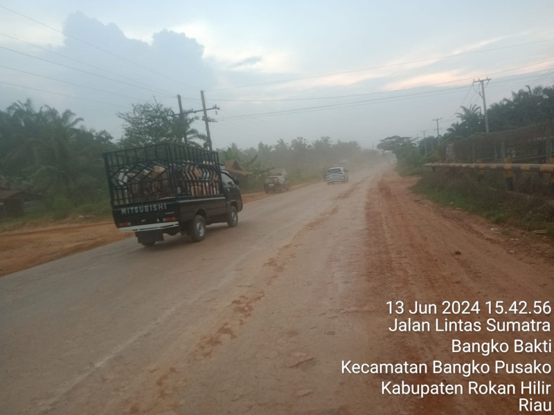 “Salah satunya akibat truk pengangkut tanah urug di wilayah kerja Well di Kecamatan Bangko pusako, Ditambah lagi tidak adanya pembersihan Roda kendaraan tersebut. Tanah lengket di roda tiba diaspal lengket, Kita berharap pemerintah segera mengambil langkah untuk menyelesaikan persoalan ini,” pungkas Adi sambil meninggalkan jalan dan menuju ke arah Bagan batu.