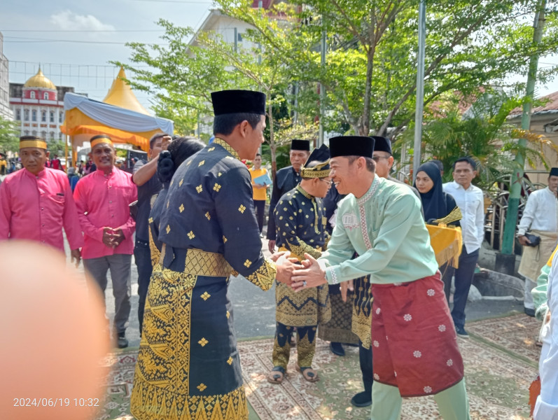 Kajari Rohil Andi Adikawira Putra dalam sambutannya menyampaikan ucapan terimakasih atas penyambutan dirinya dan keluarga oleh Pemkab Rohil yang begitu meriah dengan adat Melayu Riau.