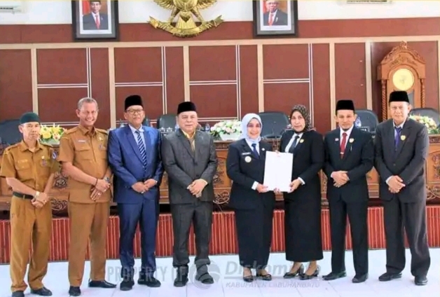 Pelaksana Tugas (PLT) Bupati Labuhanbatu Hj. Ellya Rosa Siregar, S.Pd., MM., menerima Rekomendasi Dewan Perwakilan Rakyat Daerah Kabupaten Labuhanbatu atas Laporan Keterangan Pertanggungjawaban Bupati Labuhanbatu T. A. 2023 di Ruang Rapat Paripurna DPRD Kabupaten Labuhanbatu, Selasa (11/06/2024).