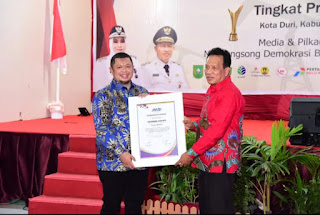 Penghargaan diberikan kepada Camat Mandau Riki Rihardi, telah memberikan dukungan penuh atas terselenggaranya acara JMSI di Mandau.