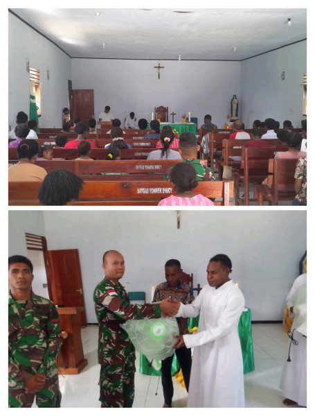 *Satgas Yonif 122/TS Berikan Fasilitas Berupa Kipas Angin Untuk Gereja Santo Petrus Ampas*