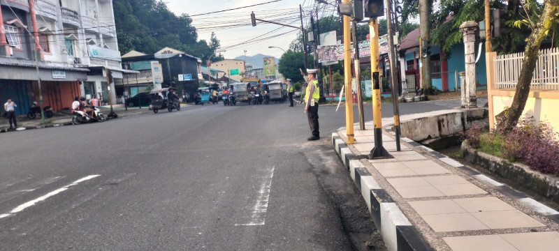 “Personil yang bertugas dari Sat Lantas, Binmas, Reskrim, Intel dan Staf Polres Sibolga, melakukan Pengaturan Arus Lalu Lintas di Persimpangan jalan Prioritas, agar arus lalulintas tetap aman lancar kondusif.