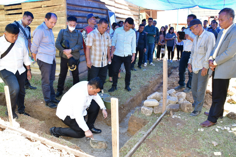 Samosir, indonesiaclik.com ll , Bupati Samosir Vandiko T. Gultom melakukan peletakan batu pertama pembangunan Kantor Desa Paraduan Kecamatan Ronggurnihuta, 18/06.