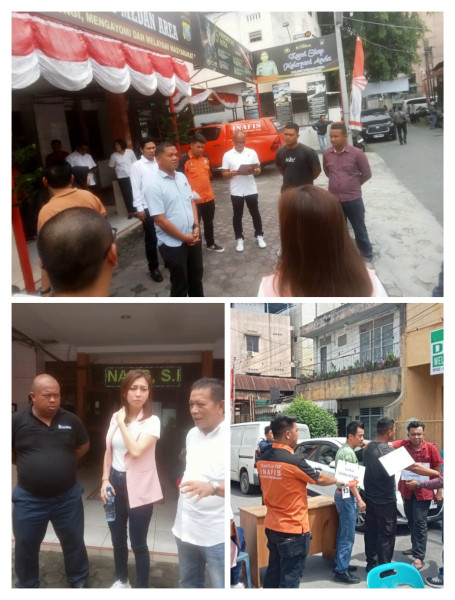 Pra rekonstruksi di halaman Mapolsek Medan Area, Rabu (10/07/2024).