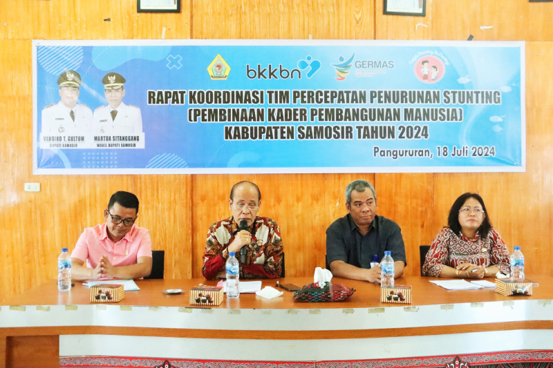 Samosir, indonesiaclik.com ll , Wakil Bupati Samosir Drs. Martua Sitanggang, MM selaku Ketua TPPS (Tim Percepatan Penurunan Stunting) Kabupaten Samosir meminta komitmen dan keseriusan KPM (Kader Pembangunan Manusia) dalam percepatan penurunan stunting di tingkat Desa/Kelurahan. Hal tersebut disampaikan saat membuka Rakor TPPS dengan agenda Pembinaan Kader Pembangunan Manusia, di Aula Disdikpora, Komplek Perkantoran Parbaba, Kamis (18/7).