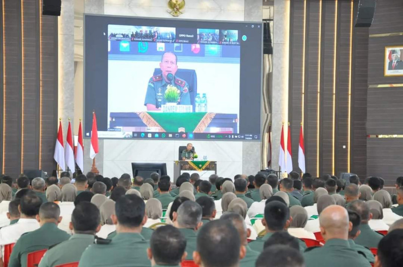 Komandan Korem 031/Wira Bima Brigjen TNI Dany Rakca, S.A.P., M.Han., yang diikuti oleh seluruh satuan jajaran secara tatap muka maupun virtual.
