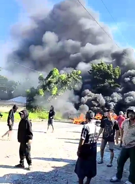 Namun kejadian bentrokan semakin memanas sehingga 1 mobil Damkar (pemadam kebakaran) dibakar.