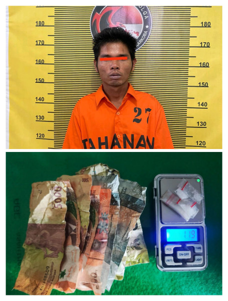 Setelah dilakukan Penggeledahan badan, ditemukan Empat Paket Sabu dengan Berat Total 1,19 gram yang diselipkan di dalam jaket berwarna coklat yang dikenakan Pelaku. Selain itu, ditemukan uang tunai sejumlah Rp 34.000 dan satu potongan plastik merah. Semua Barang Bukti tersebut diakui oleh pelaku sebagai miliknya.