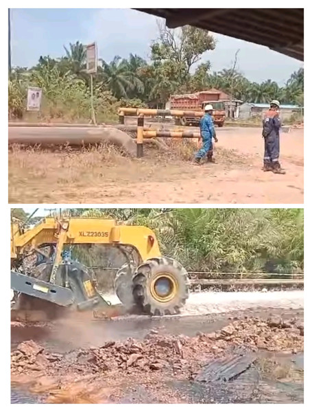 Rokanhilir, indonesiaclik.com || Sebuah pipa minyak milik PT. Pertamina Hulu Rokan (PHR) di Jalan Lintas Sumatera KM 16 Balam, Kepenghuluan Bangko Bakti, Kecamatan Bangko Pusako, Kabupaten Rokan Hilir (Rohil) terpantau bocor.