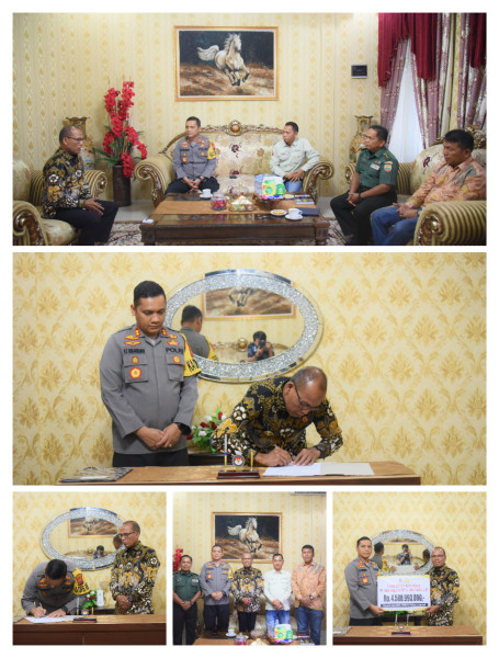 Tapteng , indonesiaclik.com ll , Penjabat (Pj) Bupati Tapanuli Tengah (Tapteng), Dr. Sugeng Riyanta, SH, MH, menandatangani berita acara Serah Terima Belanja hibah Pilkada serentak tahun 2024 tahap ke II kepada KPU, Bawaslu, Polres Tapteng, Kodim 0211/TT bertempat di rumah Dinas Pj Bupati Tapteng, Kamis (25/7/2024).