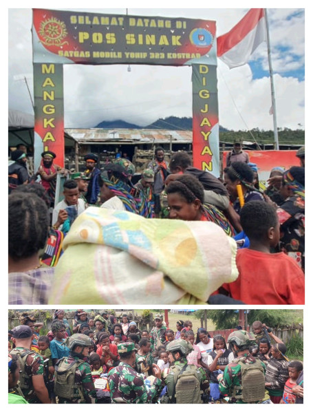 Puluhan masyarakat distrik Sinak khususnya kampung Gigobak, laki-laki dan perempuan, baik tua dan muda bahkan anak-anak sangat antusias dan bahagia datang ke pos Sinak untuk mengikuti kegiatan yang diselenggarakan pos Sinak Yonif 323 Buaya Putih.