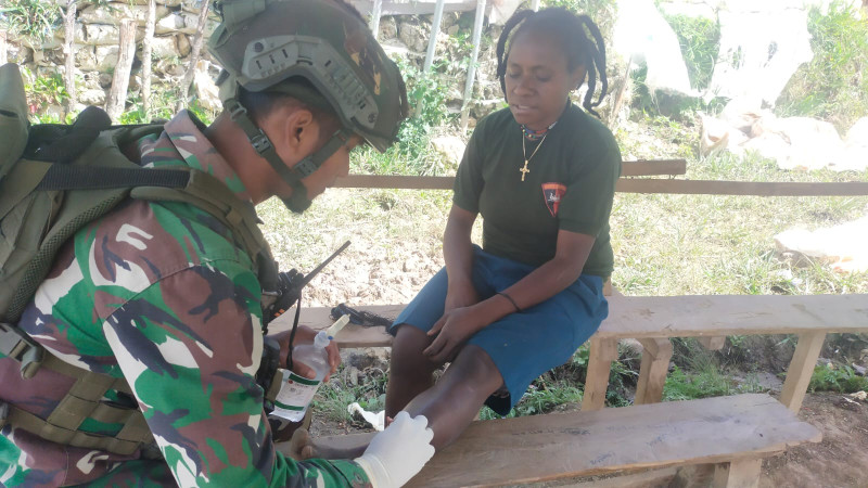 Ilaga Utara, indonesiaclik.com || Satgas Yonif 323 Buaya Putih Pos Mayuberi selalu siap memberikan pelayanan kesehatan untuk masyarakat, hal tersebut dilakukan guna memberikan kesempatan pada masyarakat Distrik Ilaga Utara yang sakit untuk datang berobat di Pos Mayuberi, Distrik Ilaga Utara, Kabupaten Puncak, Papua Tengah, (19/07/2024).