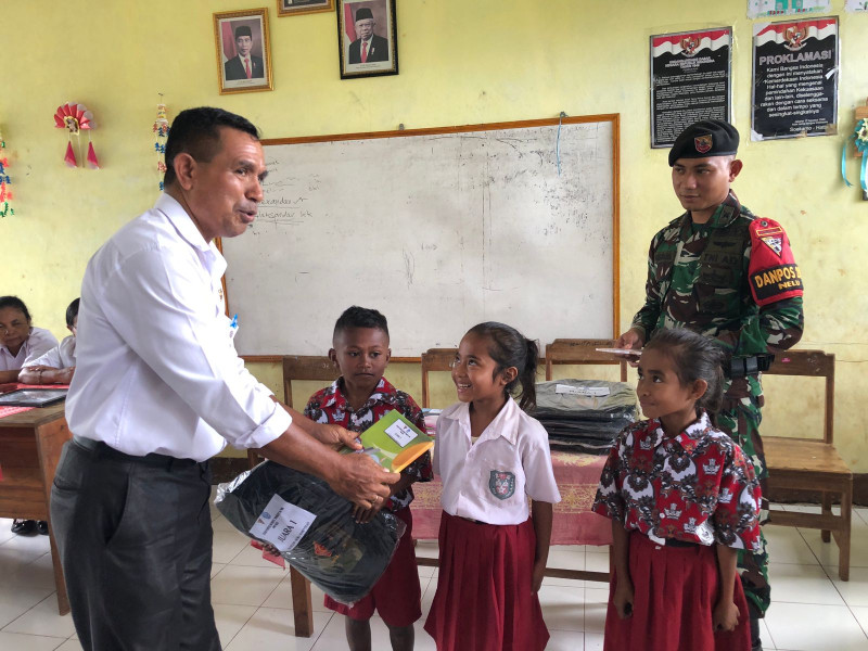 Bakitolas, NTT, indonesiaclik.com || Berikan Tas dan Alat Tulis dalam meningkatkan mutu pendidikan di ujung negeri, Pos Nelu Satgas Yonkav 6/Naga Karimata kunjungi Sekolah SDN Hoka yang ada di Desa Bakitolas, Kecamatan Naibenu, Kabupaten TTU, Provinsi NTT. (12/7/24)