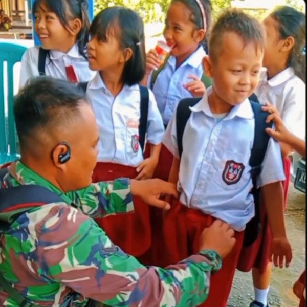 Memang Anak-Anak sekitar sini setiap hari mereka terus bermain dengan para satgas,bahkan ada di antara mereka itu baru pulang sekolah belum ganti baju sudah bermain bersama anggota Satgas,Tak hanya anak-anak warga sekitar juga tak lepas dari kebersamaan dengan anggota Satgas.