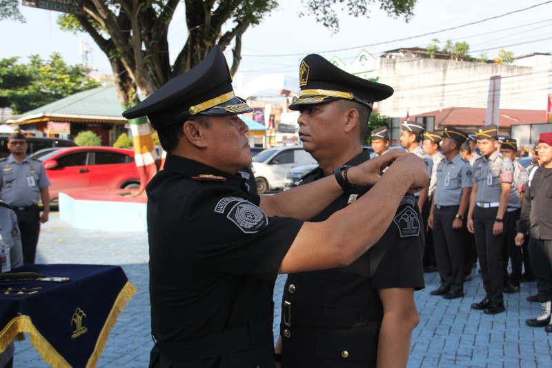 APEL PAGI, KALAPAS LANTIK DAN SEMATKAN TANDA PANGKAT PADA DUA ORANG PEJABAT LAPAS PEKANBARU