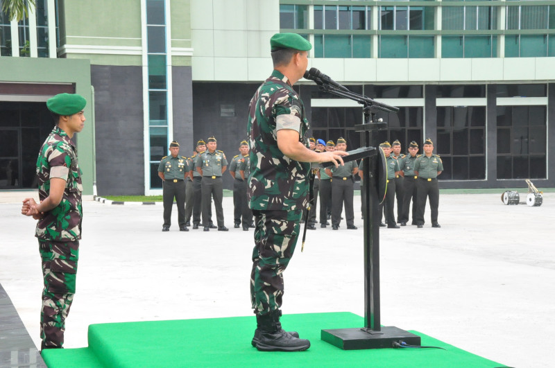 Danrem juga menyampaikan kepada seluruh prajurit harus berdedikasi dan berinofatif, cerdas dan bertanggung jawab, serta hindari pelanggaran sekecil apa pun, karna itu bisa mencemarkan nama baik satuan.(pen031)