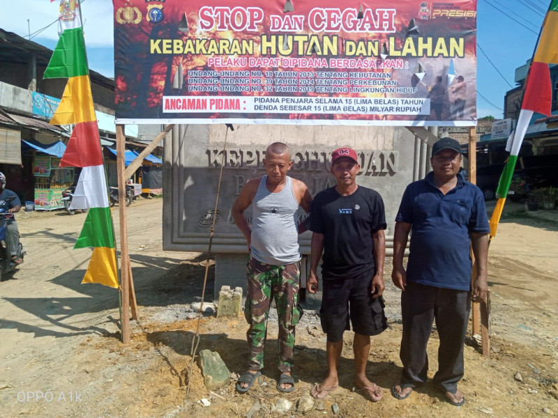 Kebakaran hutan lahan menjadi tanggungjawab dan perhatian semua pihak, untuk itu Bhabinkamtibmas Aiptu Sharmadan Siregar bersama Ketua RT 12 RODY, ketua RW 04 Junaidi Dan Kadus Mamenhidyat Desa balai jaya Kecamatan Balai jaya serta merta melakukan pemasangan spanduk himbauan,”stop Pembakaran Hutan.” di sejumlah titik di Desa balai jaya.Pemasangan Plang himbauan tersebut guna menyadarkan masyarakat pemilik lahan agar tidak terulangnya kembali kebakaran hutan/lahan yang Akhir Akhir ini menerjang di beberapa titik di kabupaten Rokan hilir.