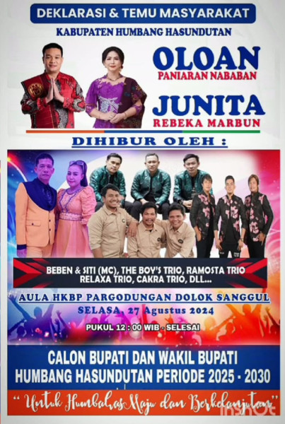 Dalam Acara deklarasi tersebut disertai dengan dihibur oleh artis artis dalam kota, untuk me meriahkan, pendukung calon bupati Dr oloan P. Nababan S. H. M. H, dan calon wakil bupati Rebecca Marbun tampak sangat membludak hingga memenuhi Gedung.