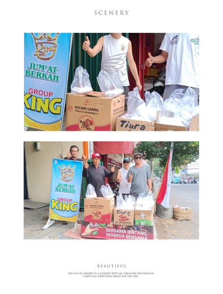 Jumat merupakan hari penuh berkah bagi ummat Muslim. Hari inilah yang dijadikan momentum oleh Grup KING untuk mendulang pahala dengan mengadakan kegiatan berbagi nasi bungkus bagi warga miskin yang sangat mengharapkan perut mereka untuk diisi.