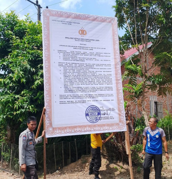 Sarolangun ,indosiaclik.com ll , Kapolsek Kecamatan Air Hitam Kabupaten Sarolangun Iptu Made Yaso bersama anggotanya turun langsung kelapangan untuk mensosialisasikan dan memasang baliho maklumat tentang antisipasi pencegahan terjadinya kebakaran hutan dan lahan(Karhutla),pada kamis.1/8/2024