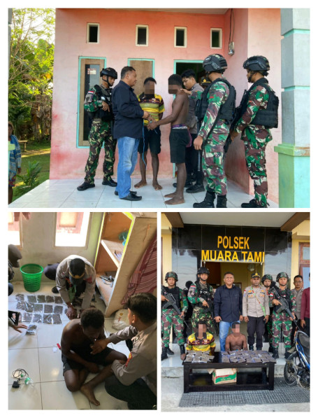 Dengan koordinasi antara Polsek Muaratami dan Satgas pamtas Yonif 122/TS Pos Mosso dan selanjutnya melaksanakan penangkapan pelaku yang berada di kampung Mosso dan mendapatkan hasil 2 (dua) pelaku tertangkap dengan inisial (CF) dan (IWP) dengan serta barang bukti lain berupa 35 paket ganja kering yang dibungkus dengan plastik bening yang bertempat dirumah pelaku tersebut.