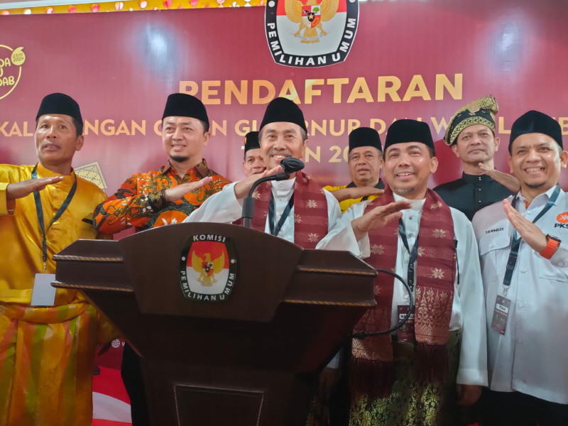Pasangan ini dihantar dengan antusias oleh pendukung dan simpatisan yang turut mengiringi mereka menuju kantor KPU Riau.