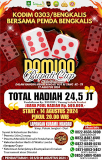 Kodim 0303 Bengkalis bersama Pemerintah Kabupaten (Pemkab) Bengkalis mengadakan Tournament Domino dalam rangka memeriahkan Hari Ulang Tahun Republik Indonesia (HUT RI) ke 79 dilapangan Koramil Mandau Simpang Pokok Jengkol Duri.
