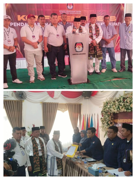 SAROLANGUN , indonesiaclik.com ll ,Pasangan dari jalur Independent Bakal calon Bupati dan wakil Bupati Sarolangun periode 2024-2029 Madel Nor Muhammad hari ini yang perdana mendaftar ke Komisi Pemilihan umum (KPU) Untuk menyerahkan persyaratan sebagai Calon Kepala daerah Kabupaten Sarolangun.Selasa 27/8/2024.