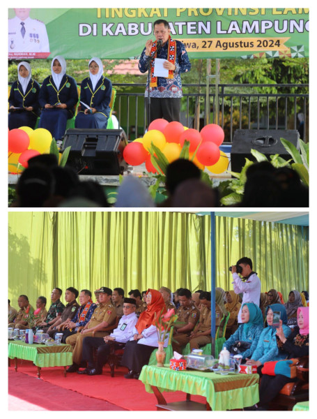 Penjabat (Pj) Bupati Lampung Barat Drs. Nukman M.M menghadiri pembukaan Lomba Sekolah Sehat (LSS) usaha kesehatan sekolah TK, SD dan MTS tingkat Provinsi Lampung Tahun 2024 di Kabupaten Lampung Barat, Selasa (27/08).
